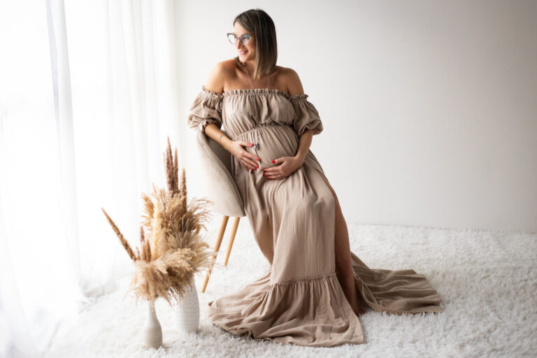 Il servizio si svolge tra la 28° e la 35° settimana di gestazione; è possibile svolgerlo in studio o in esterna (solitamente al tramonto) o entrambi. In studio troverai vari abiti maternità da indossare durante la sessione.
